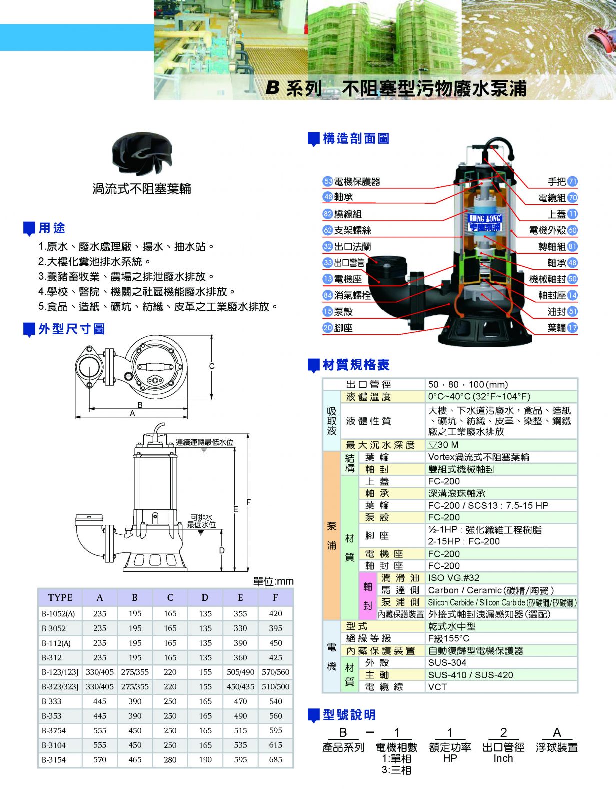 B 系列 不阻塞型污物廢水泵浦